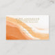 Simple stylish and elegant business card design features a modern calligraphy script on watercolor orange background. personalise the name, business, title, and other details.