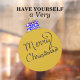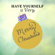 Merry Christmas is hand-written in black script. Festive gold round ornament ball with blue, red, green, yellow, white polka dot accents. Keep wording or personalise it.