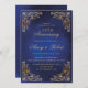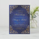 Gold Ornament Border Blue 50th Wedding Anniversary Invitation