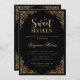 Gold Ornate Border Black Sweet Sixteen 16 Birthday Invitation
