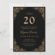 Gold Ornate Border Black Twenty 20th Birthday Invitation