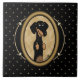 Gold Oval Dachshund Cartoon Portrait (black & tan) Ceramic Tile