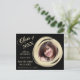 There's an elegant gold paint brushed circle frame for your photograph on the right side of this "Save the Date" graduation announcement, with your custom text in matching gold at the left. Everything is placed on a dramatic black background. The back of the card has an additional text field if needed. All the text on the front is also easily customised.