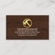 Overleaf, the same timber wood theme is used. At the top is the gold logo followed by your prestigious name, the contact details and a slogan option to publicise your services.
