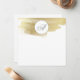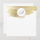 Gorgeous gold paint smudge highlights the monogram in script on a flat note card.