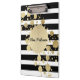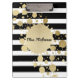 Gold Paint Splatter Black White Stripes Monogram Clipboard