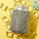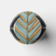 Closeup view of gold painted natural tropical date palm leaf on light muted cyan blue background. Decorative diagonal geometrical floral pattern design.