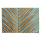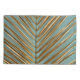 Closeup view of gold painted natural tropical date palm leaf on light muted cyan blue background. Decorative diagonal geometrical floral pattern design.
