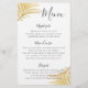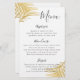 A modern minimal version of popular tropical greenery menu for a destination beach wedding or tropical theme party with gold palm fronds.