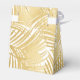Lush gold palm tree leaf pattern favour boxes for a tropical theme wedding, island theme shower, or destination island wedding.