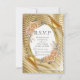An elegant gold card with flying turnoff gold corners and gold cream roses for a chic announcement card