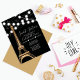 Get ready to sparkle and shine with our girly and chic Sweet Sixteen birthday party invitation! This trendy and stylish design sets the perfect tone for an unforgettable celebration. Featuring a faux printed gold sparkly glitter Paris Eiffel Tower adorned with glowing white hanging lights and silver sparkly glitter confetti, all set against a sleek black background. Flip it over to reveal a solid girly gold colour that adds a pop of fun to the back.