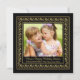 Elegant, formal and gorgeous is the way to describe this holiday card. It features a black background with a vintage, gold-framed, floral pattern.