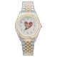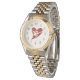 This wristwatch is a unique gift for anyone who loves their dog or cat or someone who devotes their life to the care of animals. The centre design features a glittery gold paw print inside a beautiful bright red heart. The silver and gold metal of the watch compliments the golden colour of the animal print.