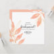 Simple and classy, these bridesmaid party invitations are the perfect way to invite all of your friends to play a role in your big spring or summer wedding. Features gold and peach watercolor floral leaves with grey text that is completely customisable. The back has a peach background with gold and white foliage.