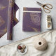 Gold peacock feather in violet background wrapping paper