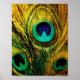 A vibrant cluster of gold, sea green, aqua, and violet peacock feathers overlaid with a golden watermark wallpaper pattern.