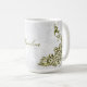 Enjoy your morning coffee with a Gold Peacock Personalised Coffee Mug.  Mug design features a vibrant gold peacock, a soft white leaf vine against a light grey grunge background with an area to personalise with your name.  Additional gift items available with this design as well as a variety of colours.