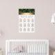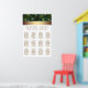 Peacock wedding table seating chart with beautiful emerald green peacock and gold design. You can move the design elements as needed and choose the font style, size and colour of your preference. You can also change the background colour.