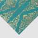Gold Peacocks and Filigree on Teal Decoupage Tissue Paper