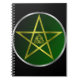 A gold pentacle/ pentagram on a green background with a triqueta in the heart of the pentacle. Gorgeous. The pentacle and triquetra have long been symbols of the Wiccan belief system and of the neo-paganism.
