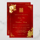 This traditional Chinese wedding invitation features a real gold foil double happiness symbol, Chinese peony flowers and a real gold foil text in a handwritten script and a modern sans serif font.