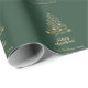 Gold Pine Tree Stars Green Merry Christmas Wrapping Paper