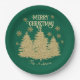 Gold Pine Trees Gold Snowflakes Paper Plate