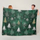 Gold Pine trees Silver Snowflakes Hunter Green Fleece Blanket
