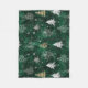 Gold Pine trees Silver Snowflakes Hunter Green Fleece Blanket