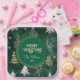 Gold Pine trees Silver Snowflakes Hunter Green Paper Plate