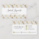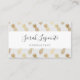 A tropical pattern of pineapples covered in a shiny gold texture. The pineapples are placed on a very light grey background. They are drawn with a mosaic technique for a modern look. This print has all the feelings of a tropical resort, but the subtle gold look gives it a classy, chic feel. The design is repeated on the back of the card. The front features a customisable cursive script font for your name in black, and a place where you can add your job title. This card works well for any professional - from consultants, to home decorators and social media experts. The back features social media icons as well as contact icons in a gold foil texture, and they are all customisable and can be moved around.