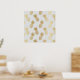 A tropical pattern of pineapples covered in a shiny gold texture. The pineapples are placed on a very light grey background. They are drawn with a mosaic technique for a modern look. This print has all the feelings of a tropical resort, but the subtle gold look gives it a classy, chic feel.