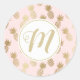 Gold Pineapple Pattern & Monogram Classic Round Sticker