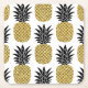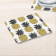 Gold Pineapples: Hand-Drawn White Seamless. Square Paper Coaster