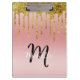Gold Pink Blush Glitter Drip Monogram Sparkle Cute Clipboard