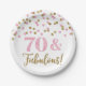 70 and fabulous birthday party plates with gold and pink glitter pattern confetti.