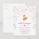 Gold & Pink Confetti Ballerina Birthday Invitation Postcard