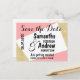 Modern pink gold colour block wedding save the date, custom elegant, simple, chic pastel pink, faux gold glitter and white abstract geometric triangles colour block pattern. Perfect for an elegant themed wedding