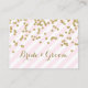 Wedding table place setting cards in light pastel blush pink and white stripes pattern with gold colour confetti and handwritten style lettering, also available in many matching wedding products.