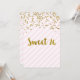 Custom 16th Birthday party invitations in light pastel blush pink and white stripes pattern with gold confetti and hand lettered style text. Add your name and party details for a unique and stylish sweet 16 birthday party invitation.
