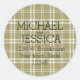 Gold Plaid Personalised name and address Classic Round Sticker