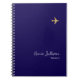 Cool and modern notebook for a travel agent... featuring a small faux gold plane printed on a deep blue background colour.