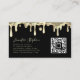 Gold Polish Drips Nails Artist QR Code Black Business Card