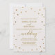 This gold polka dots wedding invitation card is perfect for an elegant wedding. The simple design features chic gold confetti on a creamy champagne background with beautiful faux gold foil calligraphy and a navy blue backing.