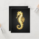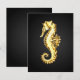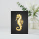 Artistic, polygonal, seahorse of sparkling, gold foil on black background.