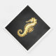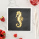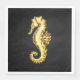 Artistic, polygonal, seahorse of sparkling, gold foil on black background.