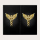 Gold polygonal Caduceus symbols on black isolated background. Low poly symbol of medicine.