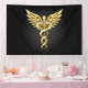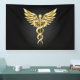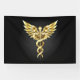 Gold polygonal Caduceus symbols on black isolated background. Low poly symbol of medicine.