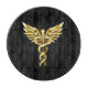 Gold polygonal Caduceus symbols on black isolated background. Low poly symbol of medicine.